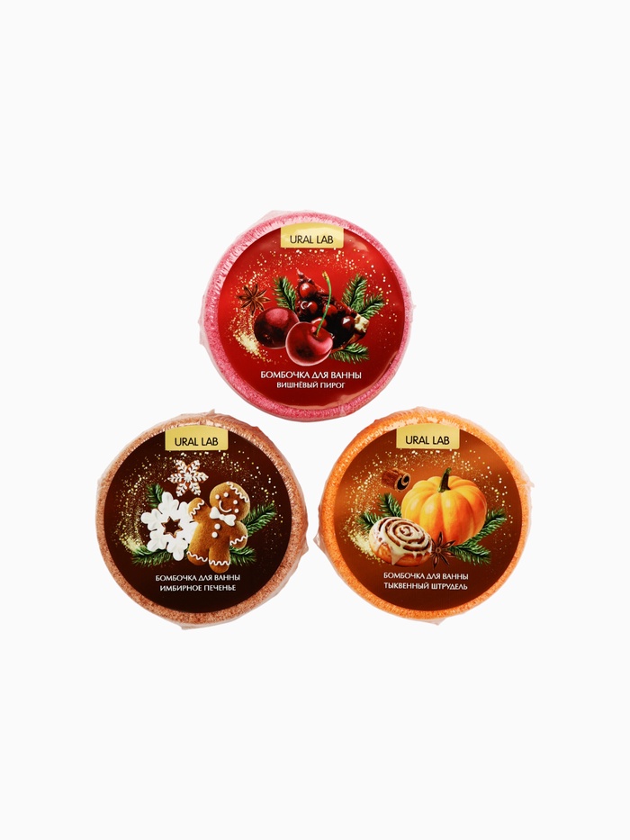 УЦЕНКА Ural Lab Арома Саунд, Набор бомбочек для ванны, 3×100 г, глинтвейн, печенье и тыква