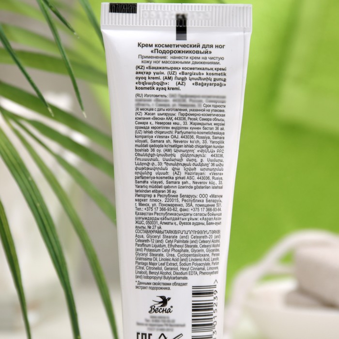 Крем для ног «Весна», подорожниковый, восстанавливающий, 40 мл