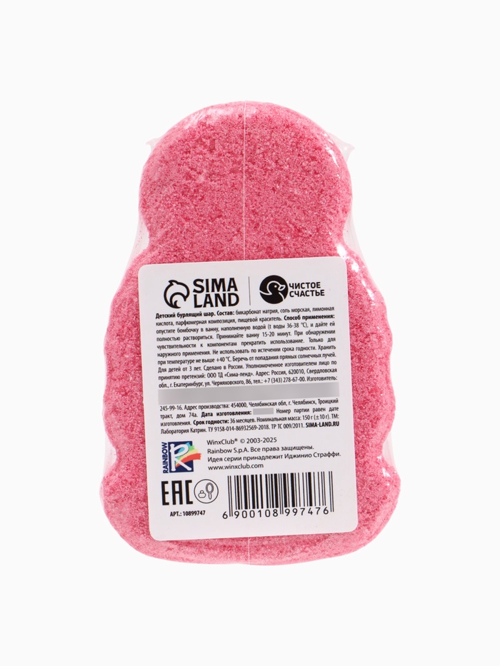 Бомбочка для ванны формовая детская, розовая, 150 г, Винкс