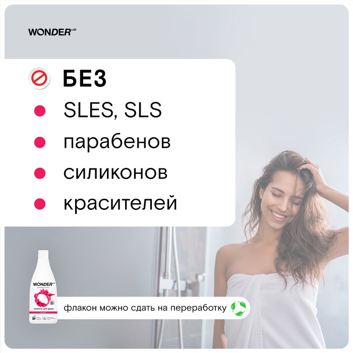 ЭКО гель для душа WONDER LAB «Роза и пион», 550 мл