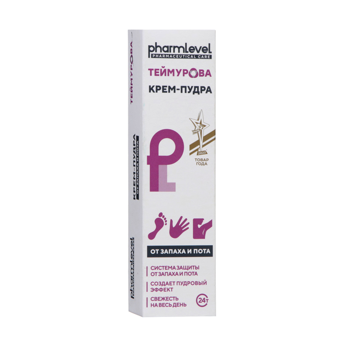 Крем-пудра от запаха и пота «Теймурова» — это инновационное средство, разработанное специально для борьбы с избыточной потливостью и неприятным запахом. Уникальная формула продукта основана на оригинальной рецептуре Теймурова, которая обеспечивает максимальную защиту от запаха и пота в течение дня.