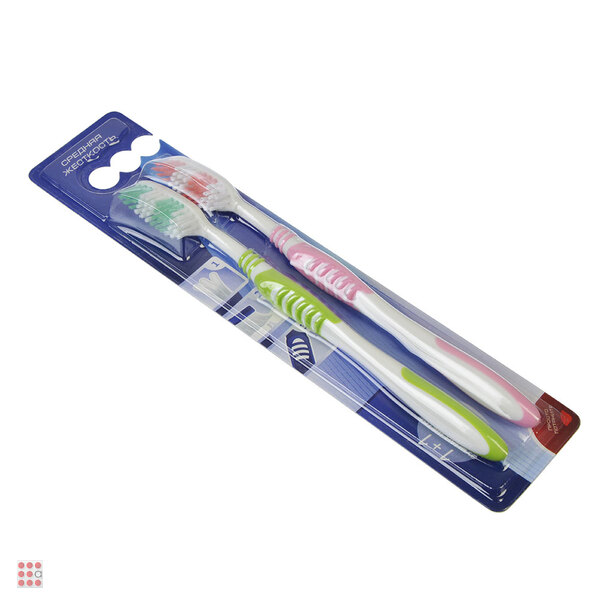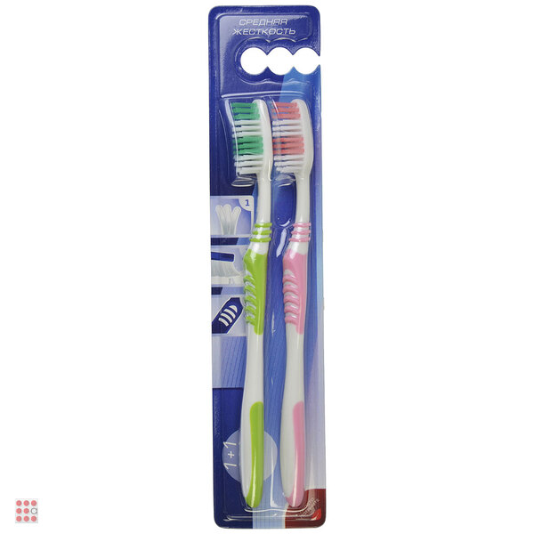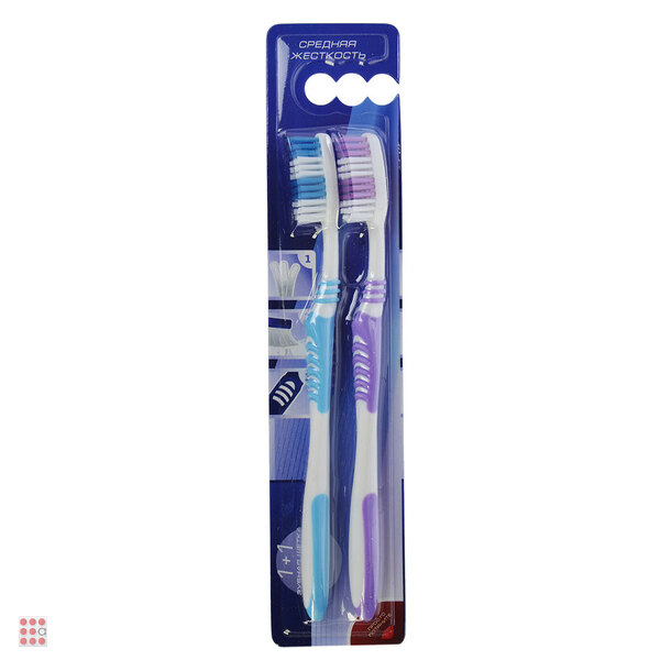 Зубная щетка 1+1 с тонкой щетиной, пластик, резина, средняя жесткость, индекс 5