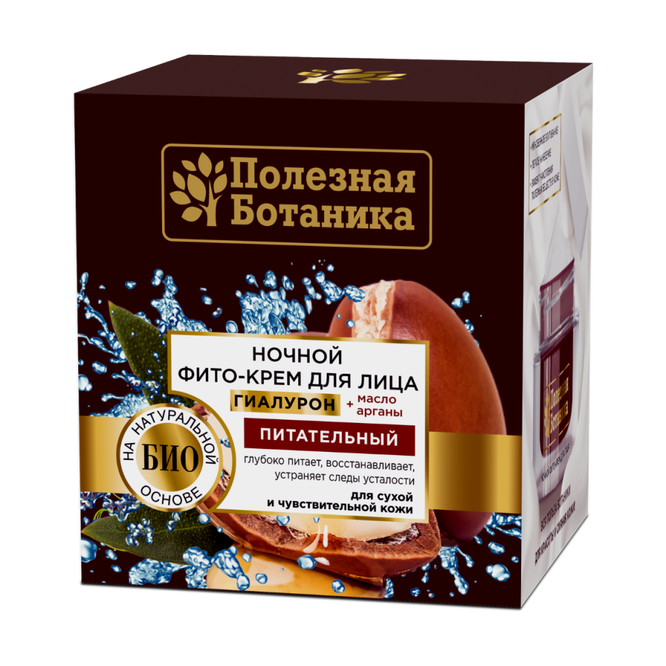 Ночной фито-крем для лица «Полезная ботаника» питательный для сухой и чувствительной кожи – разработан на основе гиалурона и натуральных природных компонентов, что помогает ему дарить непревзойденное действие на кожу лица.