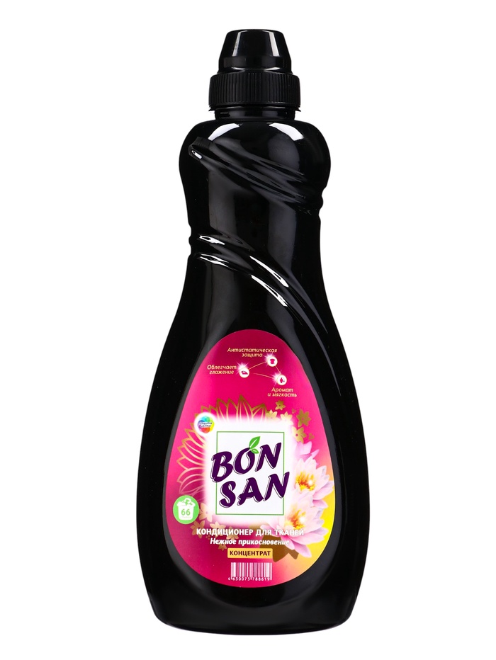 Кондиционер-концентрат для тканей Bonsan Нежное прикосновение 2 л. Подходит для использования в стиральных машинах любого типа. Перед применением встряхнуть. Не требует предварительного разбавления водой. Способ применения: применять при последнем полоскании тканей.