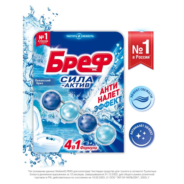 Бреф Сила-Актив придает антиналет эффект при каждом смывании.