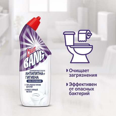 Средство для туалета Cillit Bang Антипятна+Гигиена Сила отбеливания дезинфицирующее, 750мл
