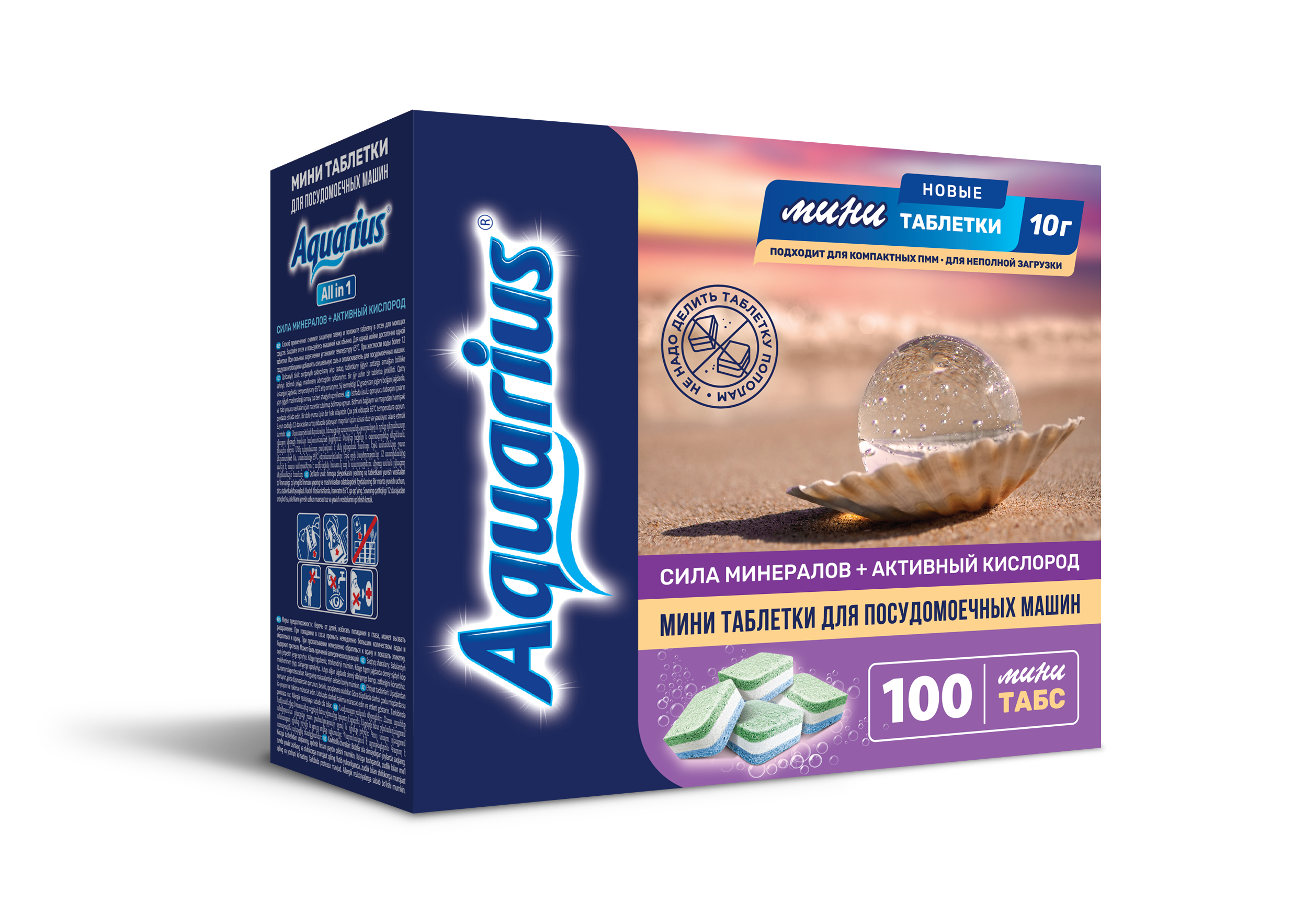 Таблетки для ПММ "Aquarius"; mini tabs 10гр Сила миниралов+ Активный кислород. 100шт
