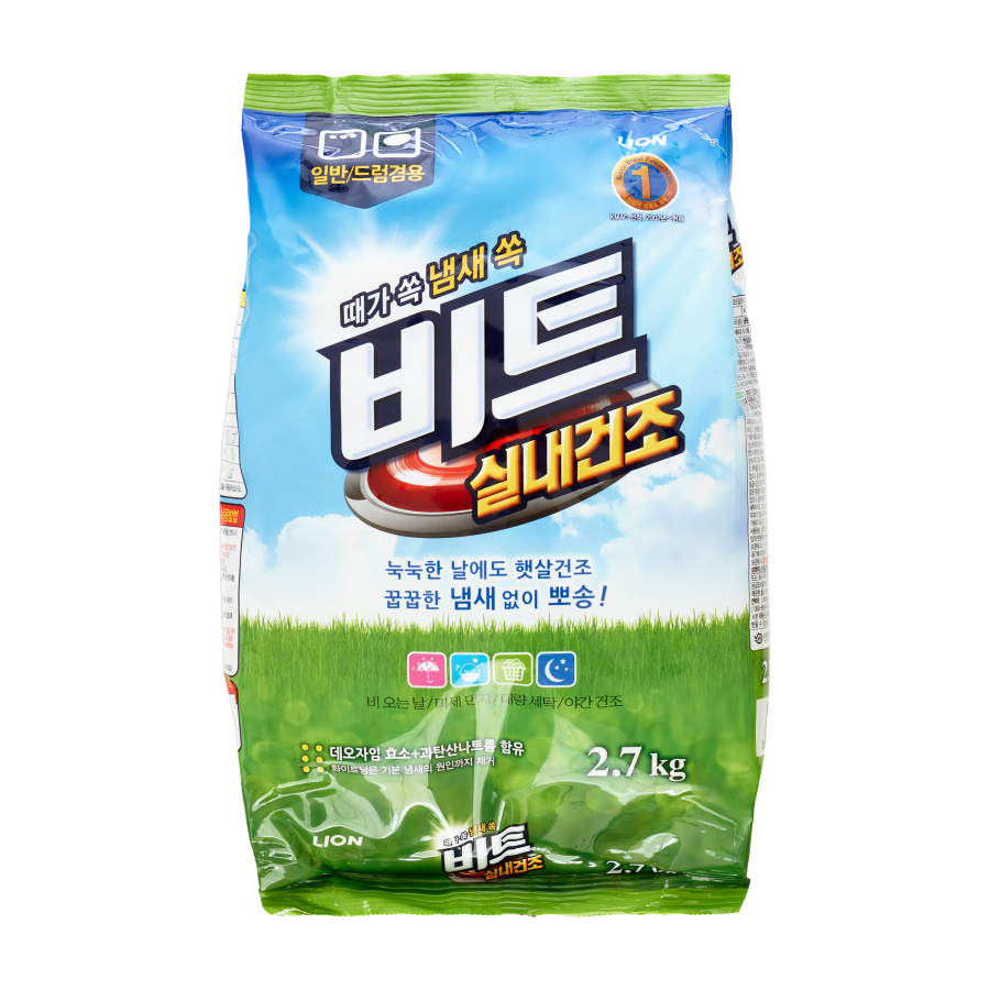 LION Beat in door (Pouch) Концентрированный стиральный порошок для автоматической и ручной стирки "Beat in door" Сушка в помещении 2,7кг
