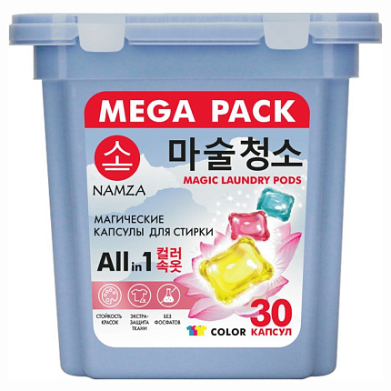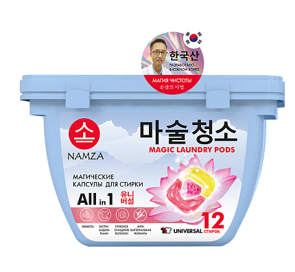 Капсулы для стирки NAMZA All in 1 UNIVERSAL, это жидкое средство в новом формате. Подходят для цветного и белого белья из х/б, льняных, синтетических, смешанных и деликатных тканей. В состав трехкамерной капсулы входит: гель для стирки, пятновыводитель и кондиционирующие гранулы. Благодаря новейшей PMC-технологии, капсулы взрываются при контакте с водой и действующие вещества сразу же проникают в волокна. Жидкое средство для стирки бережно отстирывает любые пятна, при этом не разрушает структуру волокон и придает свежесть. Антибактериальная формула удаляет до 99% всех известных бактерий. ПРЕИМУЩЕСТВА NAMZA All in 1 UNIVERSAL: 1. Глубокое очищение волокон. 2. Магический аромат - парфюмерная композиция PREMIUM-класса. 3. Капсулы полностью растворяются в воде при температуре от 20 °С. 4. Четко выверенная простая дозировка. 1 капсула = 2-5 кг белья, 2 капсулы = 5-9 кг белья Храните капсулы в недоступном для детей и домашних животных месте! Капсулы для стирки NAMZA разработаны совместно с ведущим технологом Дж