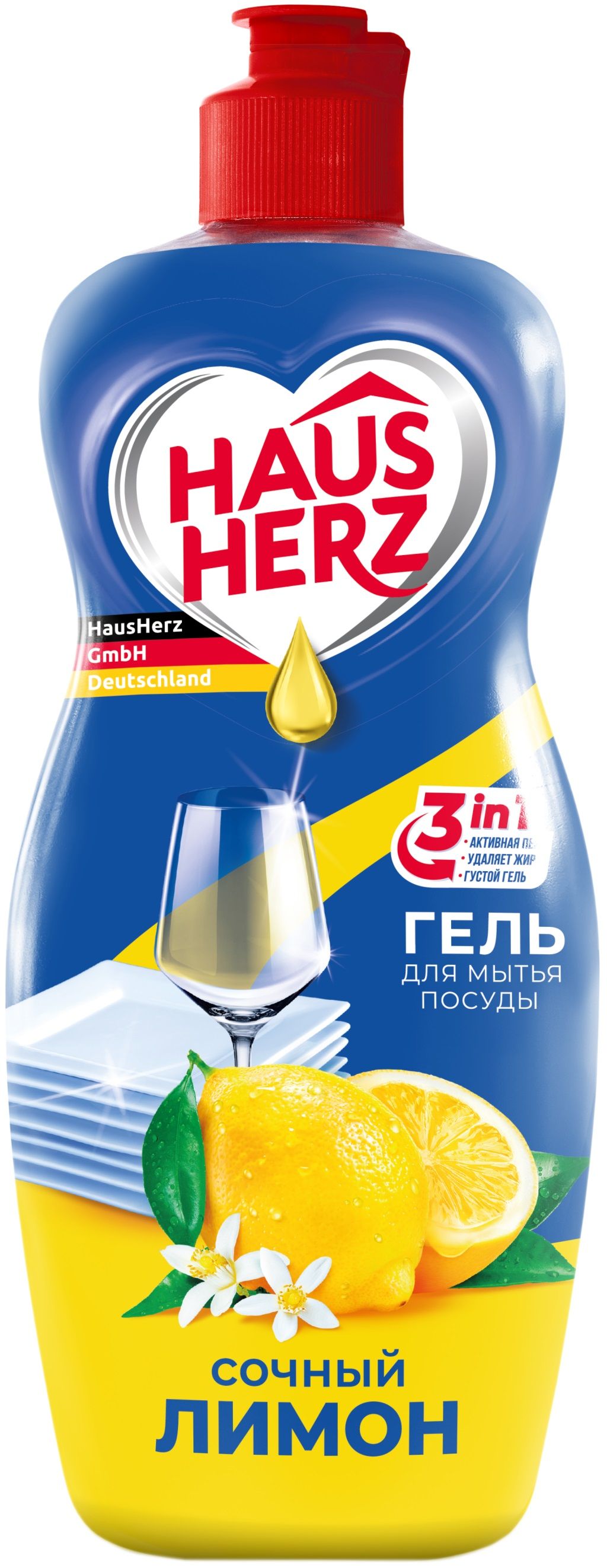Средство для мытья посуды HAUS HERZ Сочный лимон, 650 мл