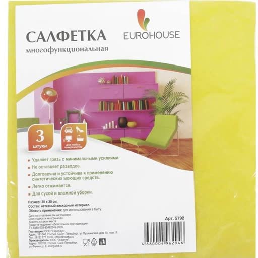 Артикул: 5792 Производитель: Комп..показатьлекс Количество единиц в упаковке: 80 Размер опт. упаковки (ШxГxВ): 21x31x31 Размер товара (ШxГxВ): 30x30x1 Количество на складе: 144Салфетка вискозная 30*30см 3 шт в пачке ЭКОНОМлекс