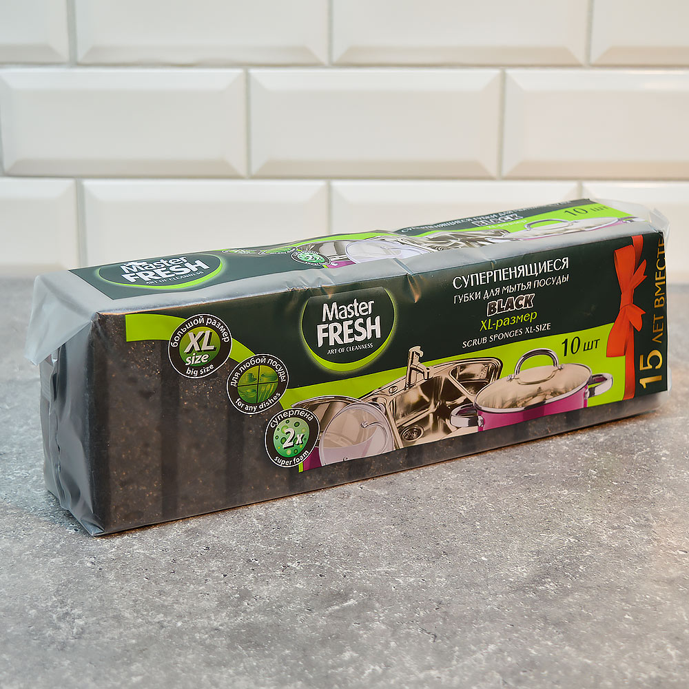 Губка для посуды 10шт XL bubble-поролон "BLACK" Master FRESH