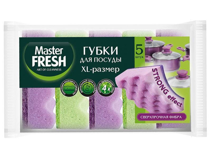 Губка для посуды 5шт 9*6,5*3,5 XL STRONG effect Master FRESH
