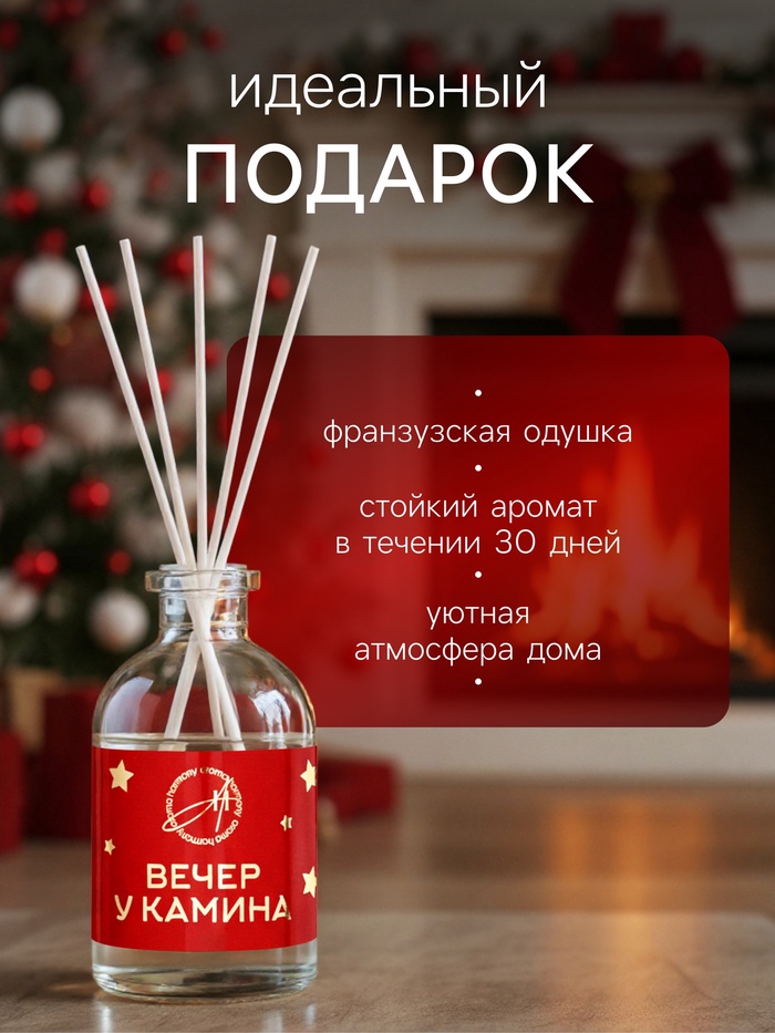 Почувствуйте чарующую атмосферу зимнего вечера с ароматическим диффузором «Вечер у камина» — ярким, тёплым и уютным, наполняющим дом ощущением праздника и спокойствия. Этот аромат переносит в момент, когда за окном темнеет рано, а в комнате царит мягкое свечение гирлянд, уют и тепло домашнего очага.