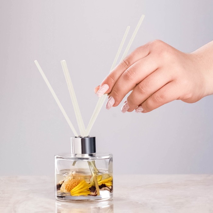 Чтобы аромат оставался насыщенным, 1–2 раза в день доставайте палочки и переворачивайте их, вставляя другим концом в стеклянную колбу. Интенсивность аромата зависит от влажности воздуха (в более влажном помещении летучесть аромата сильнее), проветриваемости помещения и количества палочек.
