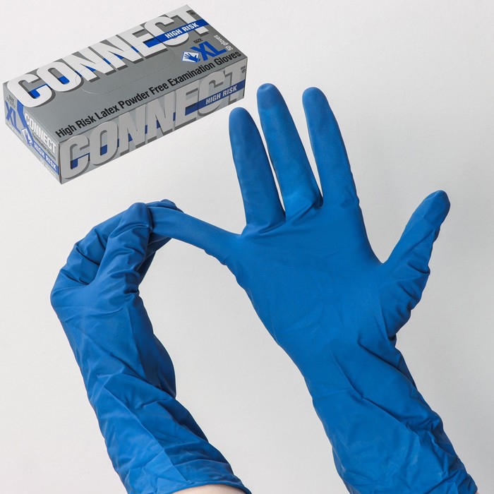 Перчатки латексные High Risk, смотровые, нестерильные, размер XL, 50 шт./уп (25 пар), синие