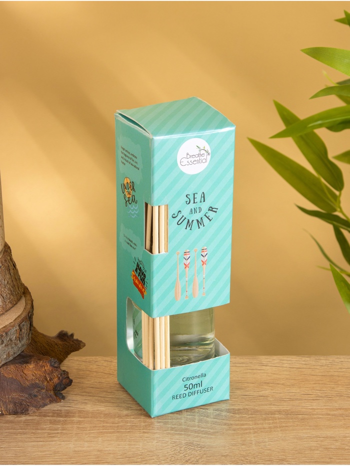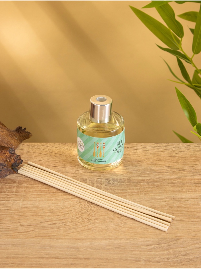 Диффузор Sea and Summer Citronella на 50 мл с 6 палочками. Эффективный и стильный способ наполнить помещение свежим, бодрящим ароматом цитронеллы. Идеально подходит для дома, офиса или летней веранды. Простота использования и долговечный эффект.