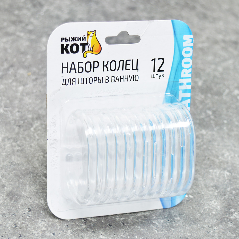 Кольца для штор в ванную 12шт, пластиковые овальные прозрачные