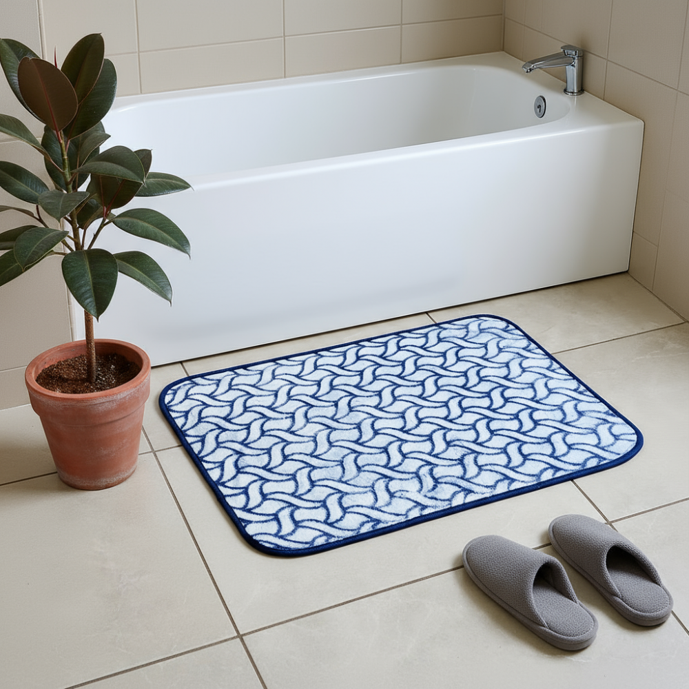 Коврик для ванной 60*90см "Зигзаги", мягкий ворс, полиэстер, (синий)