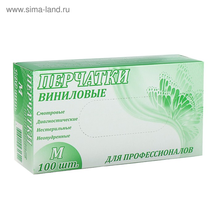 Перчатки виниловые, неопудренные, нестерильные, размер M, 50 пар, прозрачные