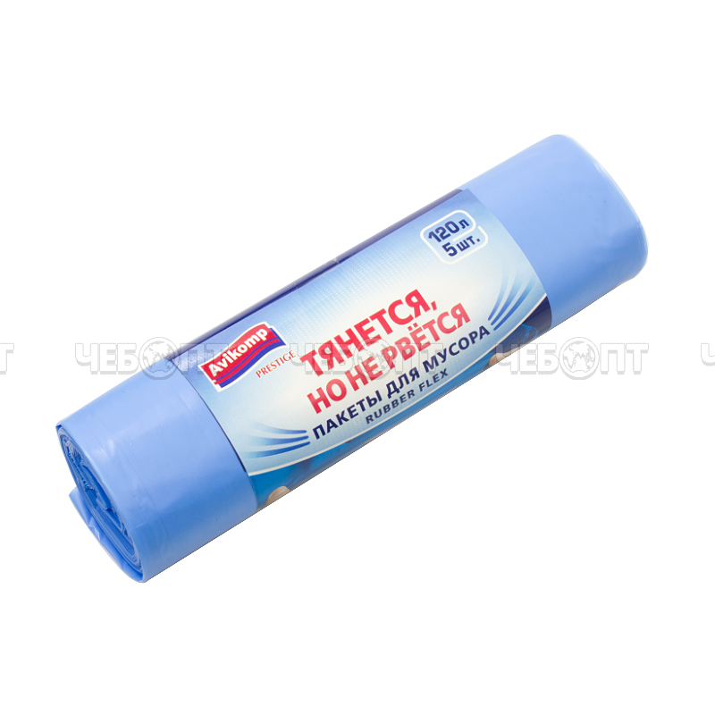 Торгово-производственная компания ЧЕБОПТ продает Мешки для мусора 120 л, ПВД с КАУЧУКОМ, PRESTIGE размер 700*1100 мм, толщина 30 мкм, в ролике 5 мешков арт. 87358 [20]. Информация по приобретению товара -