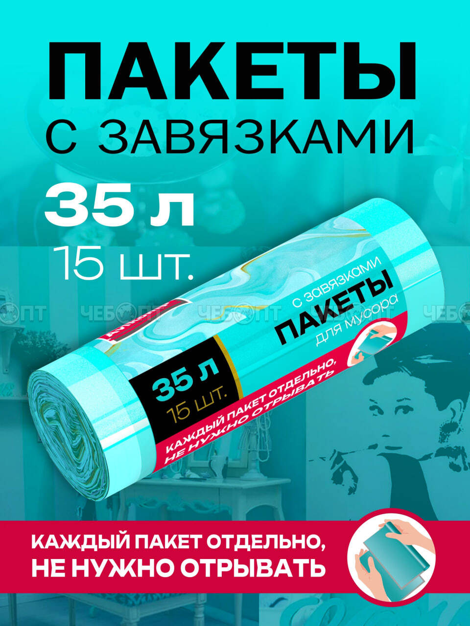 Мешки для мусора 35 л, ПСД с завязками, AVIKOMP, в ролике 15 мешков арт. 42183 [18] АВИКОМП