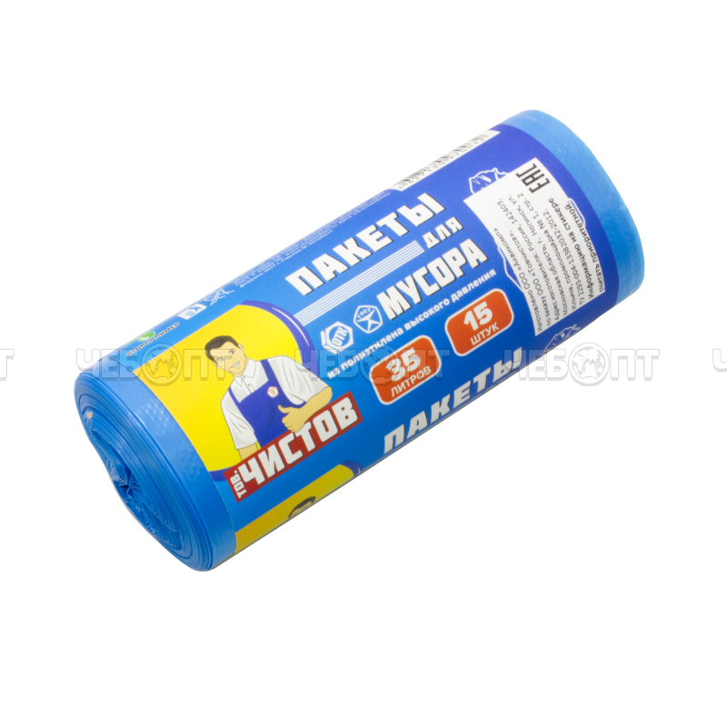 Торгово-производственная компания ЧЕБОПТ продает Мешки для мусора 35 л, ПВД ТОВ. ЧИСТОВ размер 500*600 мм, толщина 20 мкм, в ролике 15 мешков арт. 0032 [40]. Информация по приобретению товара -