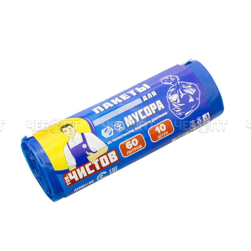Торгово-производственная компания ЧЕБОПТ продает Мешки для мусора 60 л, ПВД ТОВ. ЧИСТОВ размер 600*700 мм, толщина 22 мкм, в ролике 10 мешков арт. 0025 [35]. Информация по приобретению товара -