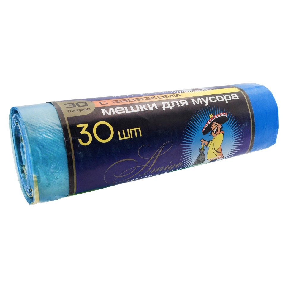 Мешки для мусора с завязками ПНД 30 л, 30 шт