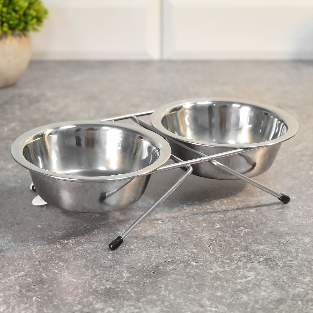 Миска для животных 2шт*180мл на подставке, нерж