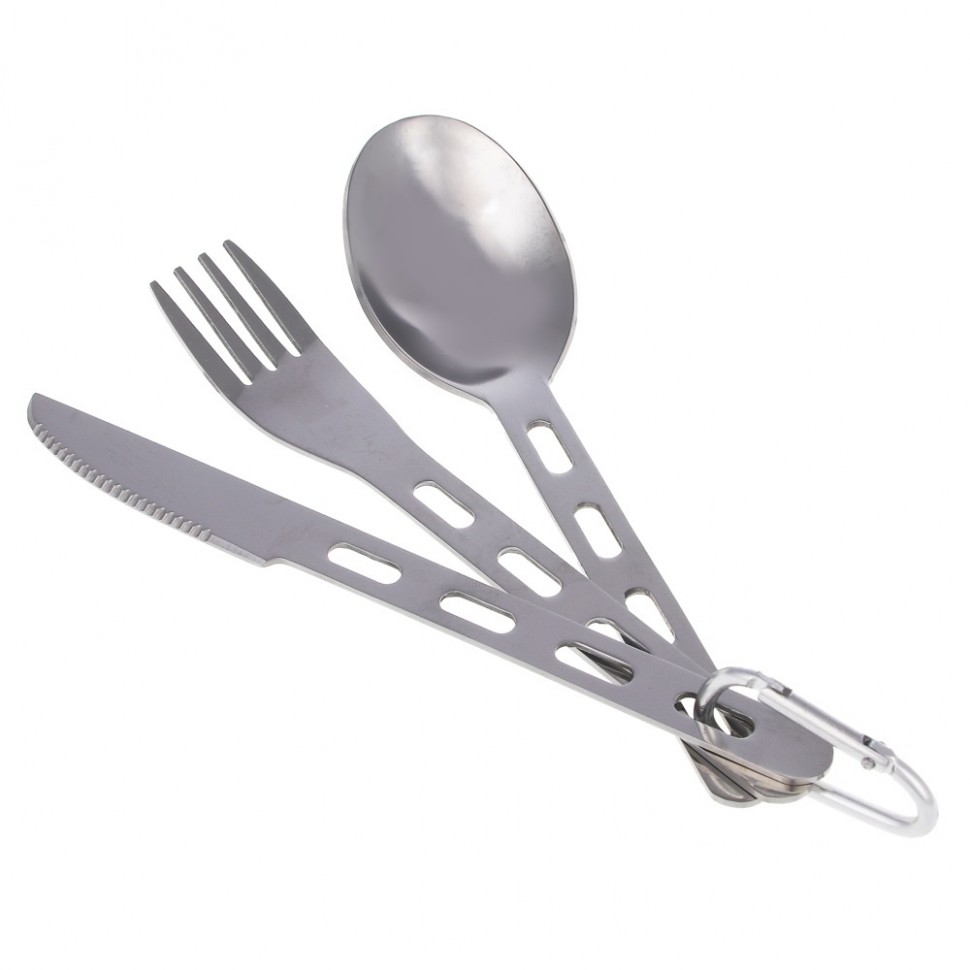 Набор 3 предмета: ложка, вилка, нож на карабине, сталь