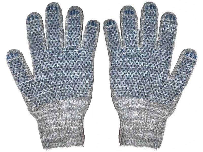 Перчатки х/б 4 нити 10 класс 116ТЕКС серые с пвх точка