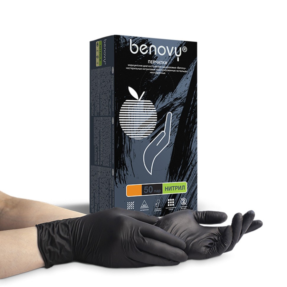 Перчатки нитриловые смотровые нестерильные текстурированные ЧЁРНЫЕ Benovy S