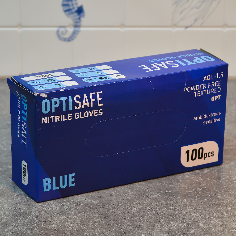 Перчатки нитриловые XS неопудренные (100шт), голубые, Optisafe