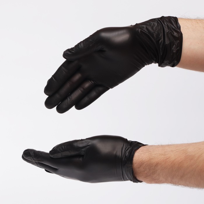 Перчатки виниловые, неопудренные, нестерильные, L, 50 пар, чёрные, цена за 1 пару