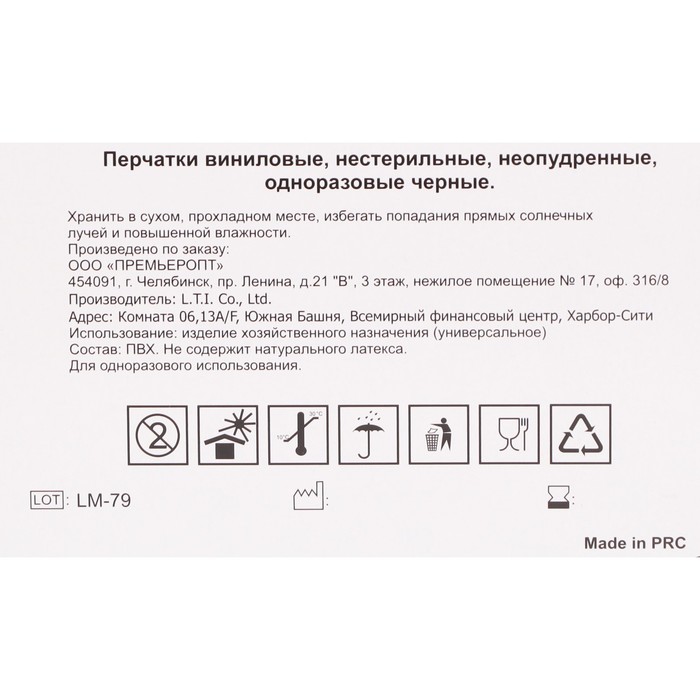 Тип перчаток: Виниловые