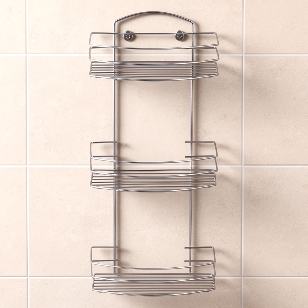 Полка прямоугольная 3-х ярусная с радиусом 25,5*14*56,5см хром, ППР-3
