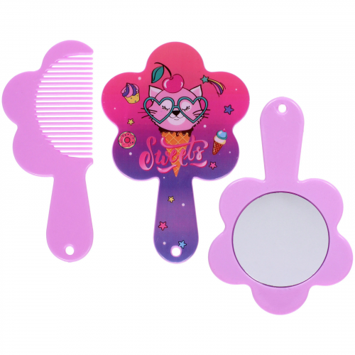 Расческа с зеркалом в наборе детские "МИМИШКИ", котик, цвет лазурный, 11см