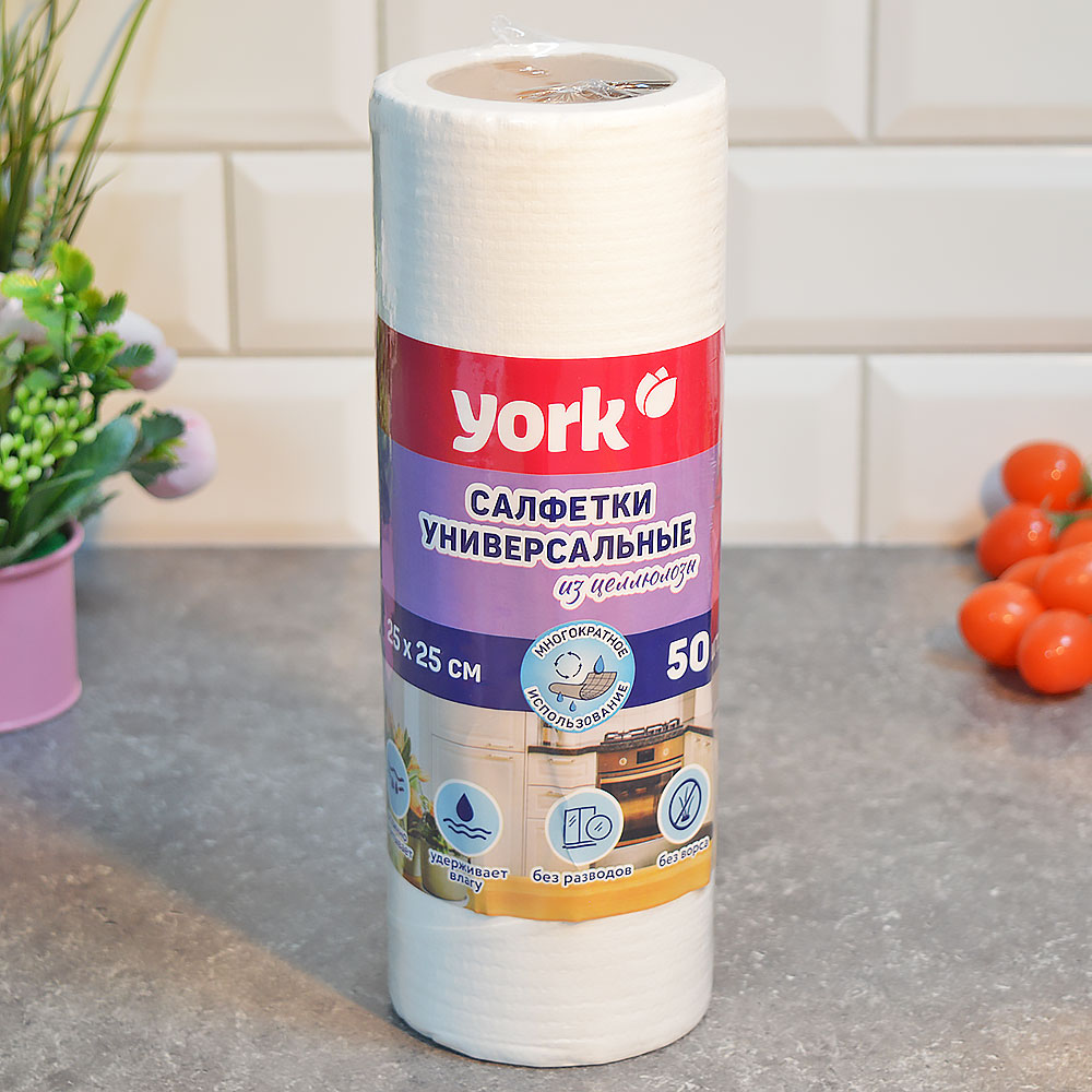 ! Салфетка целлюлозная 25*25см 50шт в рулоне YORK