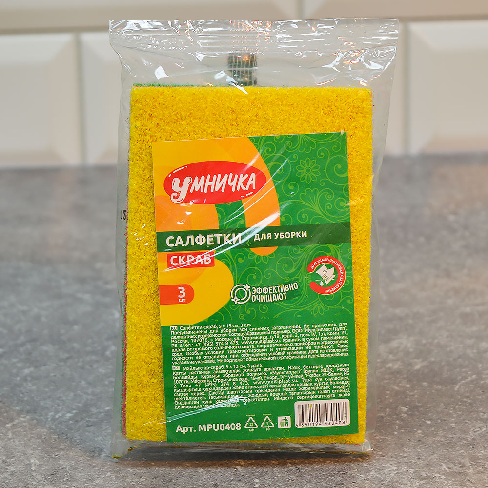 Салфетки-скраб 3шт 130*90мм из аброзивной фибры "Умничка"