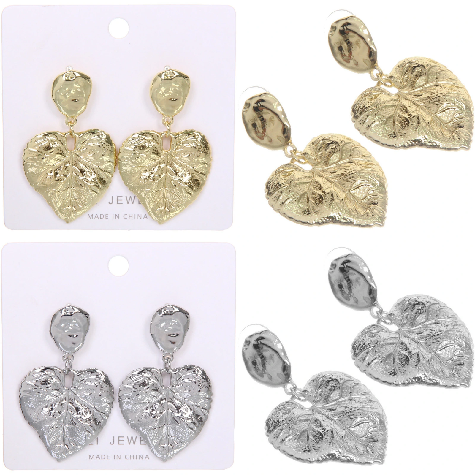 Серьги "ЭЛЛОДИ", листья, цвет золото и серебро, 3*5см