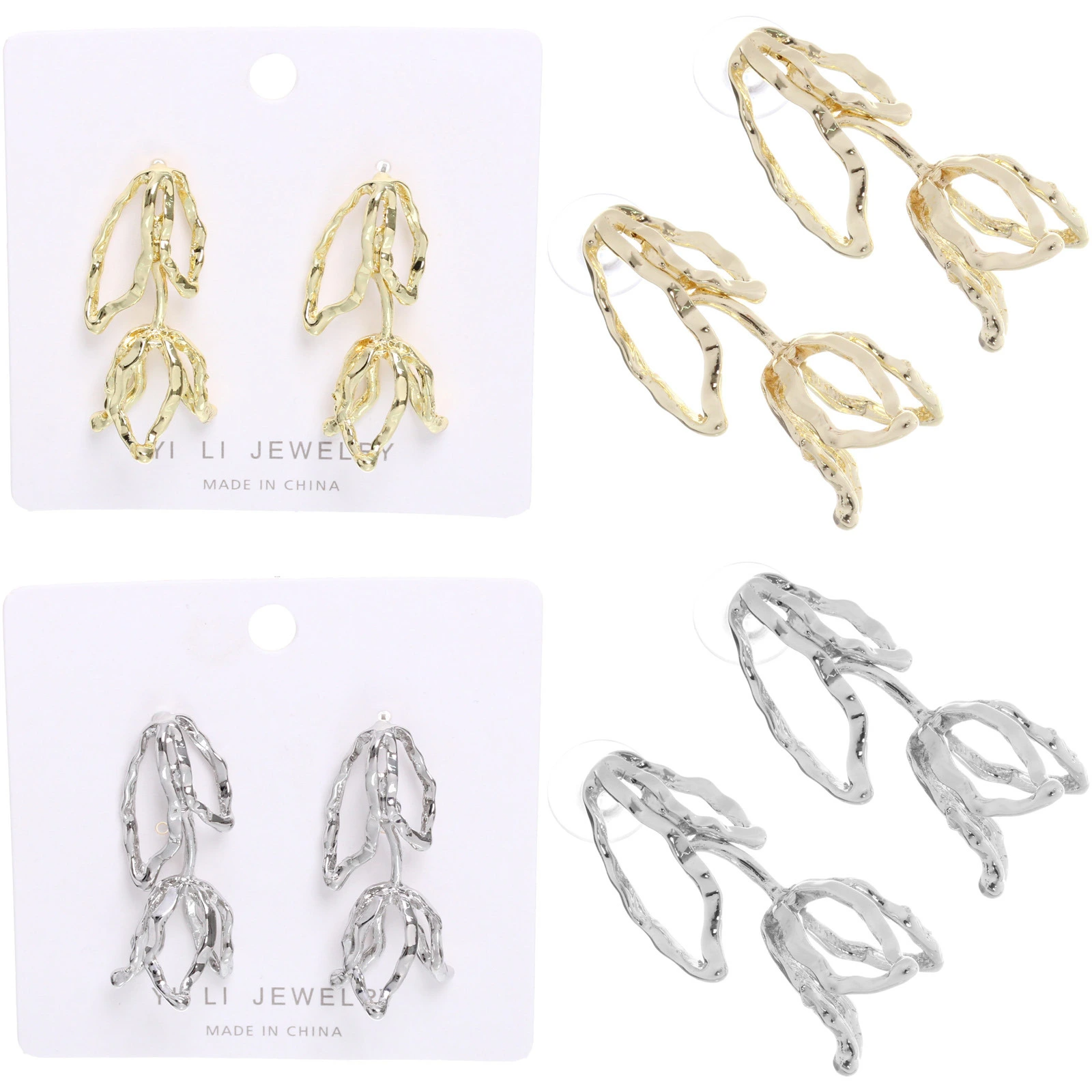 Серьги "ЭЛЛОДИ", тюльпаны, цвет золото и серебро, 4*1,5см