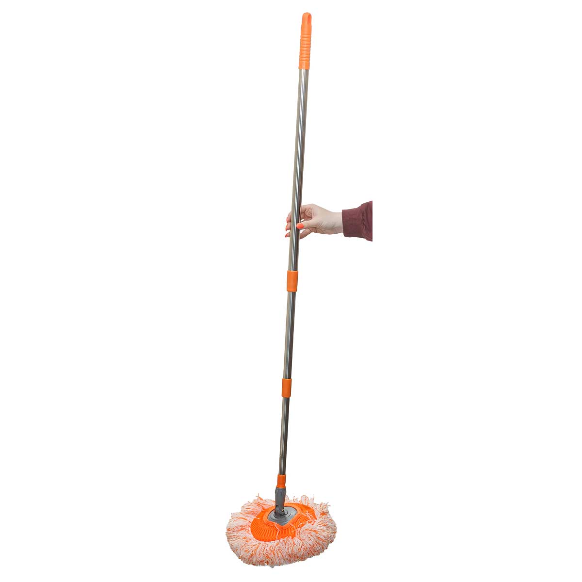 Швабра NA2602 вращающаяся, круглая, два вида микрофибры d-20см, подвесная телескопическая ручка 78-132см, швабра для мытья полов, стен, потолков