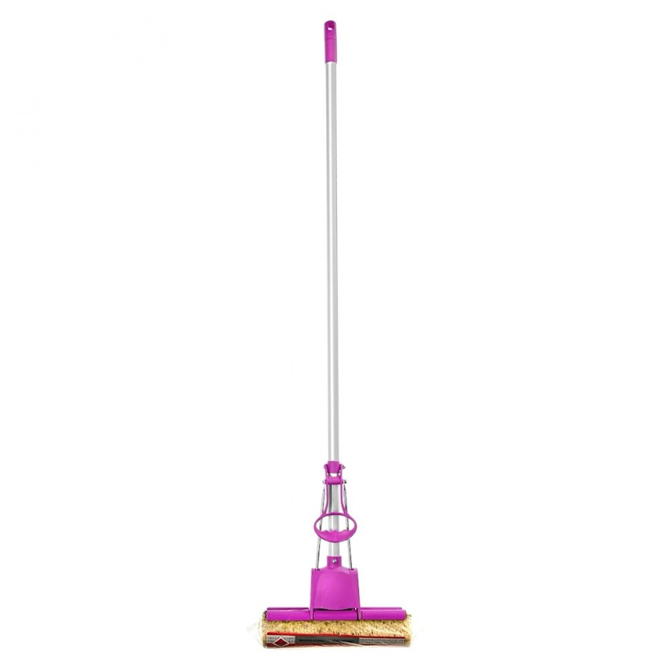 Эргономичная ручка швабры обеспечивает удобный захват и снижает нагрузку на руки. Отжимной механизм позволяет легко и быстро регулировать влажность губки.