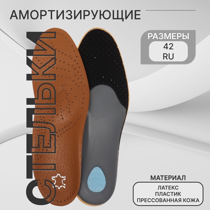 Стельки для обуви, амортизирующие, дышащие, с жёстким супинатором, р-р RU 43 (р-р Пр-ля 42), 27.5 см, пара, коричневые