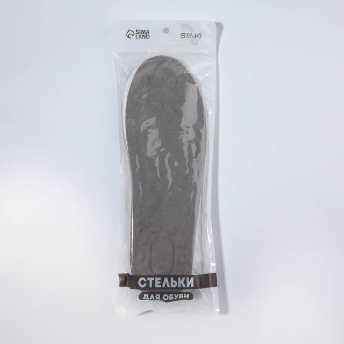 Стельки для обуви, амортизирующие, р-р RU до 44 (р-р Пр-ля до 45), 28 см, пара, серые