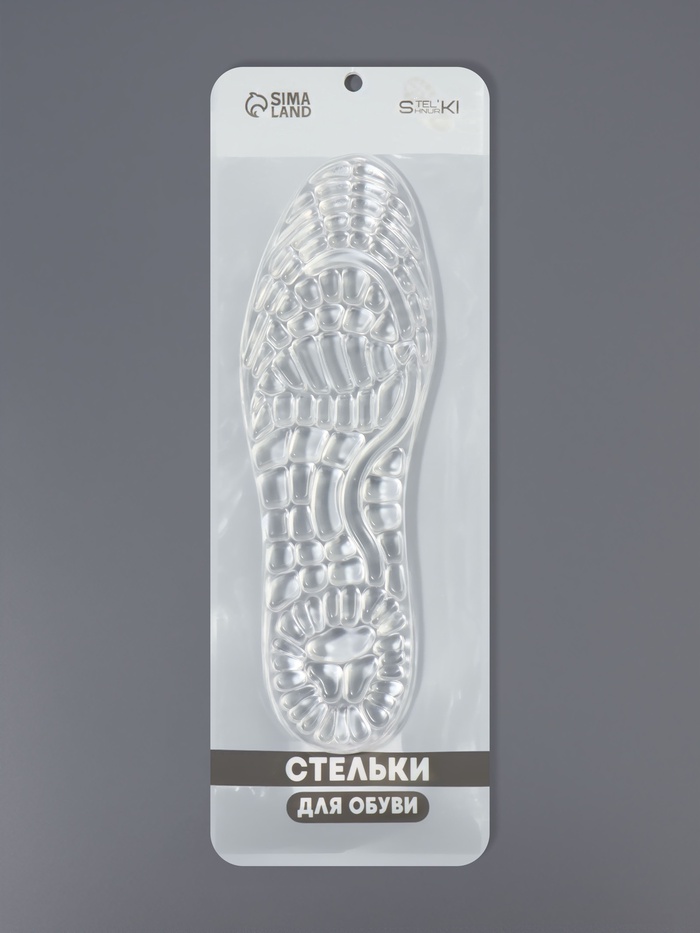 Стельки для обуви, универсальные, силиконовые, на клеевой основе, р-р RU до 41 (р-р Пр-ля до 40), 26.5 см, пара, прозрачные