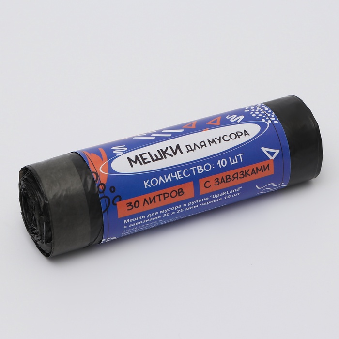 Мешки для мусора в рулоне UpakLand с завязками 30 л 25 мкм черные 10 шт.