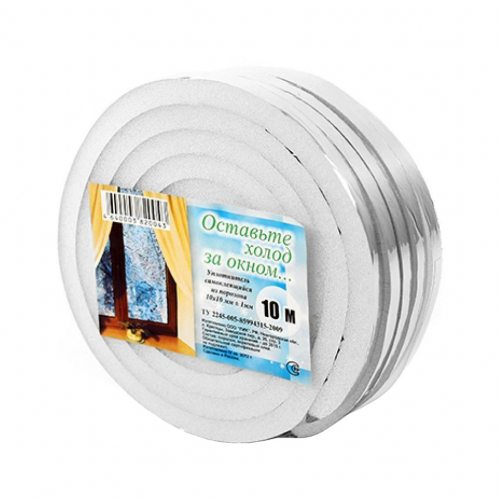 Утеплитель «Теплолента», изделие для заклеивания щелей в оконных рамах. Утеплитель имеет уникальные свойства тепло- и звукоизоляции. Изготовлен из вспененного пенополиэтилена. Применяется на очищенной и обезжиренной поверхности. Лента хорошо отклеивается и не повреждает краску оконной рамы. Длина изделия 10 м.