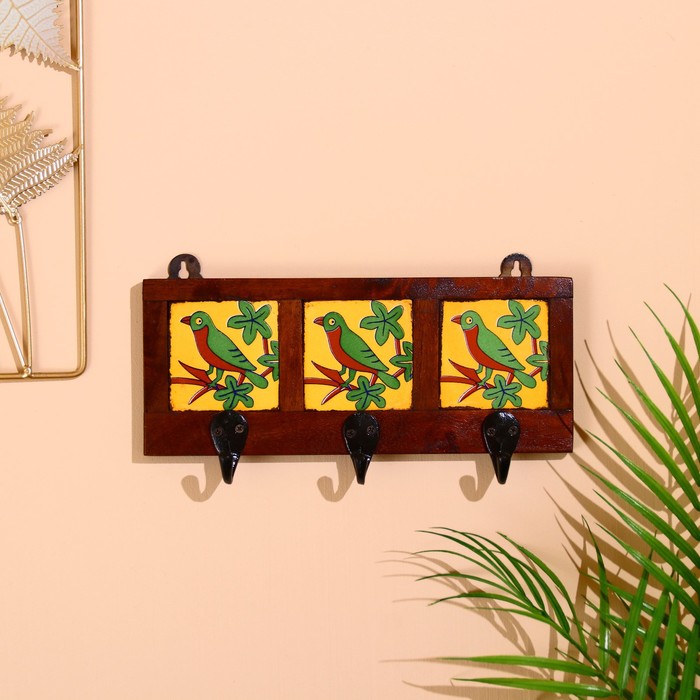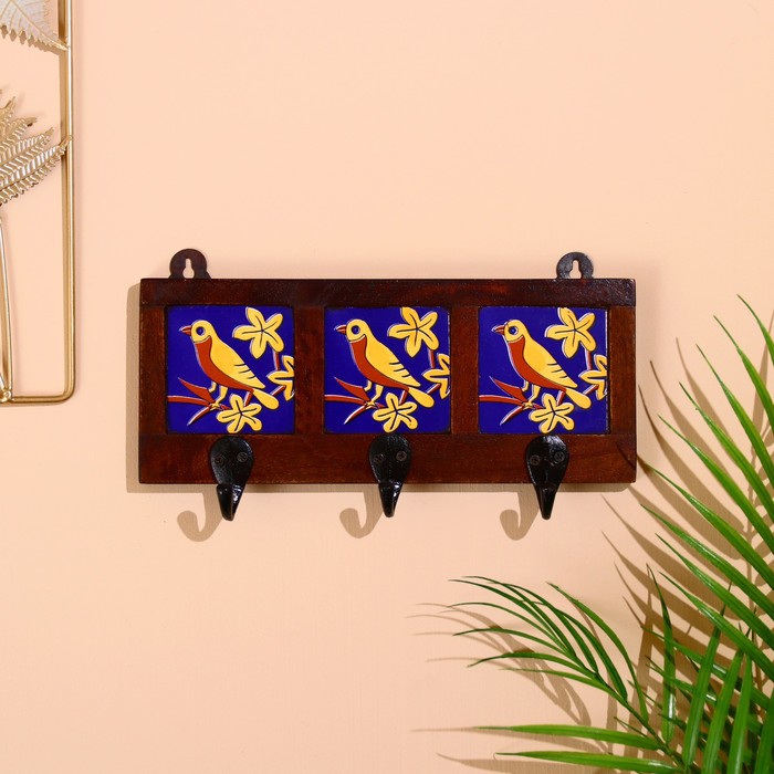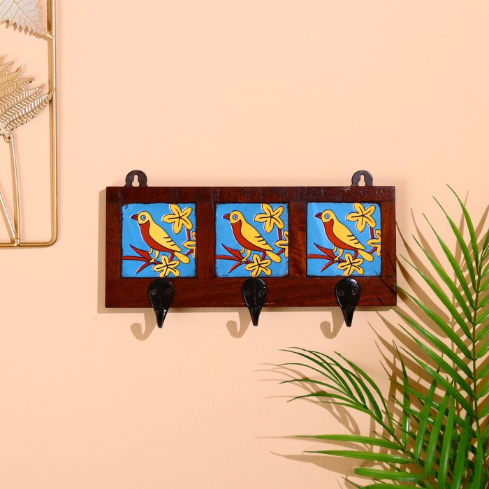 Вешалка настенная «Птички», дерево, 5.5×29×16.5 см, 3 крючка, МИКС